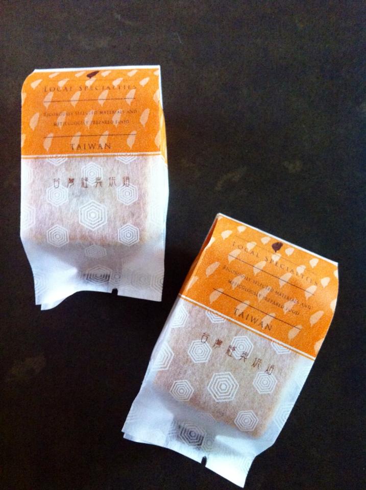二種口味的鳯梨酥(土鳳梨和紅豆), 裝袋後的樣子也挺美的呢!!