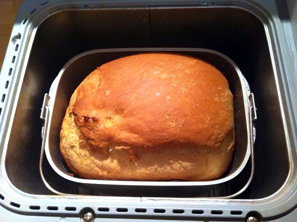 我在網路上看了許多台灣人用這台麵包機做土司的中文食譜, 發現幾個湯種食譜, 交叉比較後, 略做調整, 就開始我的首次用麵包機做湯種土司, 結果還不賴, 而且四小時完全不用理它, 算是很不錯的懶人法. 如果你只是單純的想吃新鮮健康的吐司 (它也可以做葡萄乾土司), 可以考慮麵包機 (它也可以幫你揉麵), 以它方便的程度和出爐麵包的口感, 我覺得可以考慮, 這樣每天你都有新鮮出爐的土司可享用 (它可以設定時間).