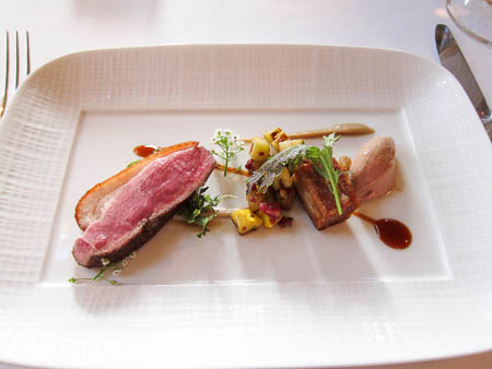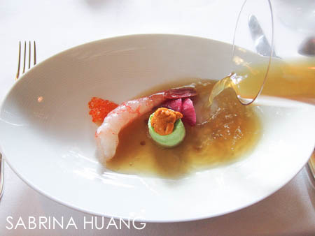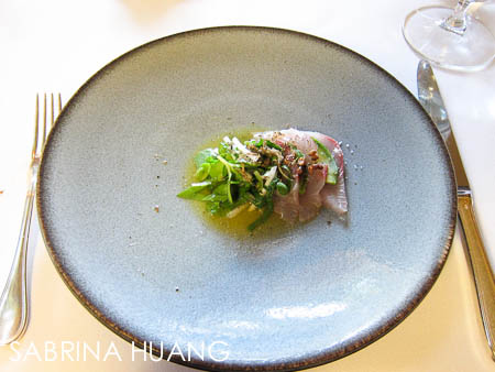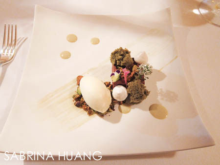 我覺得服務生們的整體表現, 不像是出自真心, 像是戴上面具表演一場戲, 厲害的演員會讓你分不出來真假, 那也就算了, 偏偏工夫不到, 我又不能拆穿, 這頓飯吃得真是超級無敵痛苦. 食物也沒有讓我有米其林餐廳的驚艷, 印象中有二道菜我覺得偏鹹, 當我們八點離開餐廳時, 特地去上個廁所, 好讓我有機會環繞一下整家餐廳, 發現有二張桌子是空着的, 真不知道店經理是在不爽個什麼勁.