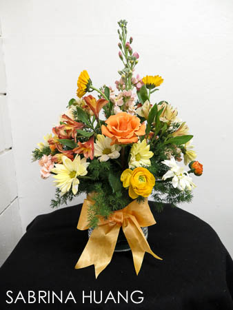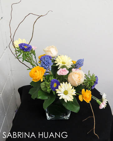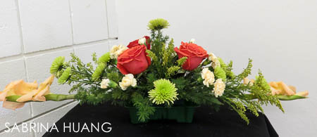 基礎西式插花課(Fresh Flower)老師是Mieko Hirano (California Flower Art Academy), 她是第一代日本人, 說英文的口音很重. 上課地點有二個 – 85/De Anza/Bollinger和Burlingame, 南灣上課時間則有週日二三的早上10-12:30和週二的晚上5:00-7:30/5:30-8:00等四個時段可選. 除了西式插花課, 她也教Ikebana.