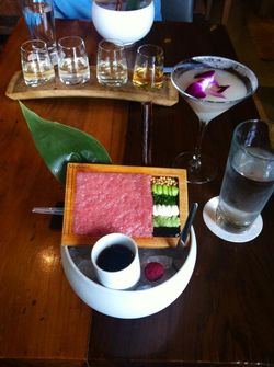 一月份在Livingsocial上看到Morimoto Napa新餐廳的Chef-Created “Omakase” Meal的Deal, 有二種選擇 Five-Course Lunch (原價$240, 特價$150) or Nine-Course Dinner (原價$420, 特價$360) FOR TWO (不含飲品). 冷靜幾秒就馬上下單, 因為我知道這種好康不一定會再有, 如果沒有買, 不知何時才有機會去了.
