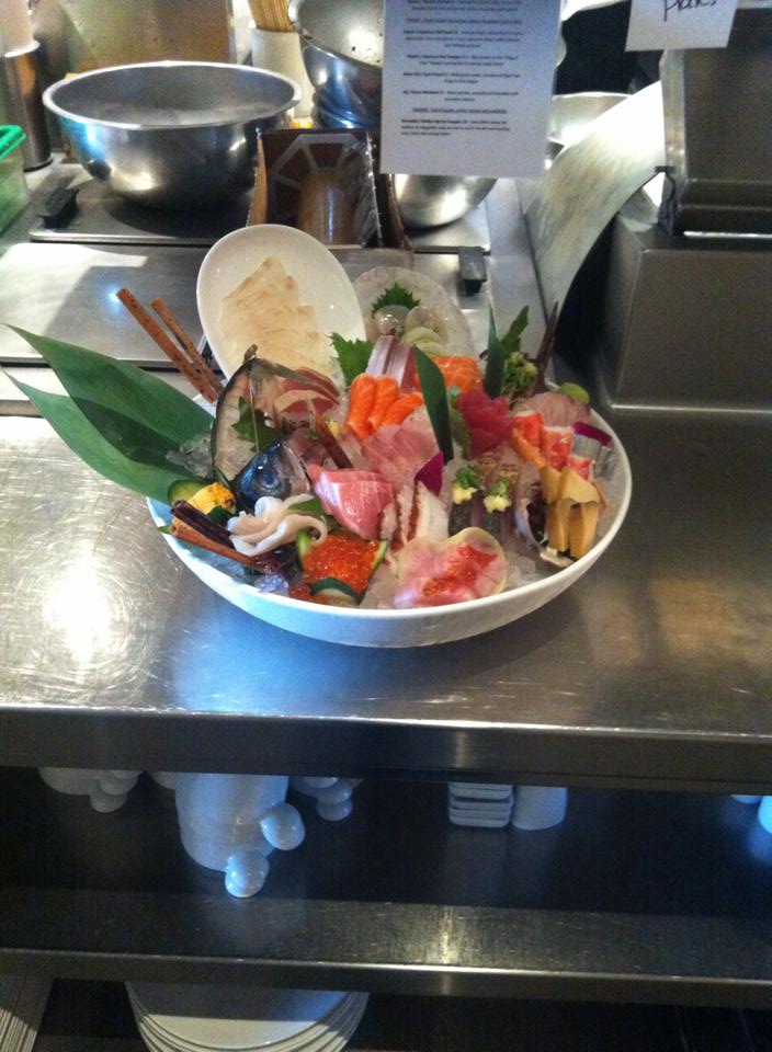 左邊是最後的甜點, 口感層次多 很特別, 右邊是別桌點的生魚片, 我剛好路過拍下來.