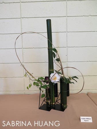 Margaret Kurasaki是我的Ikenobo老師, 她在日本念天主教學校, 十幾歲來美國的日本人 (她的英文沒有口音, 想法也比較美式), 我們一個月上二次課 (在老師Cupertino的家上課), 每次$30 (含花材; 二對一小班), 插一盆花. 第一次上課老師會準備花器和Ikebana專用剪刀讓你選購, 你也可以自備.