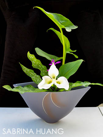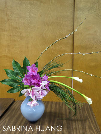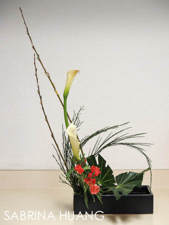 我目前和不同的日本老師學不同流派, 後來我才知道在日本傳統花藝規矩裡是不允許這樣做的, 但二位日本老師的反應不同, 也代表了老師本身個性和想法的差異, 這也影響到我學習的奇摩子. 最先我是和朋友一起學Ikenobo, 上了五六堂課後, 我自己另外又找了Sogetsu老師, 我的動機其實單純, 只是想親身體驗二者的不同 (老師的教法和二種流派的差異), 然後再決定我最終要學的風格流派.