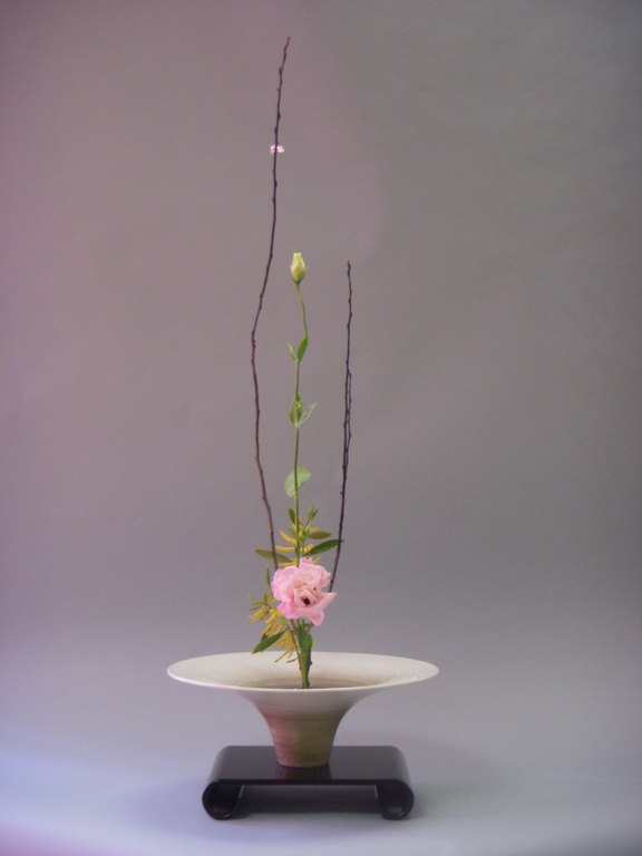 Ikenobo的基本花型:立花(Rikka)、生花(Shoka)、自由花(Jiyuka)、盛花(Moribana). 你可以自己選擇要哪種風格. 我因為沒有概念, 所以頭二次上課是跟朋友一樣插生花, 後來老師看我的個性, 鼓勵我試試Free Style, 所以第三次開始都改插Free Style, 我很喜歡.