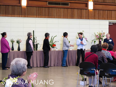 當天現場事先已經有許多會員插好花, 放在二邊桌上供大家欣賞, 然後由他們一一簡單介紹他們當天插的花.