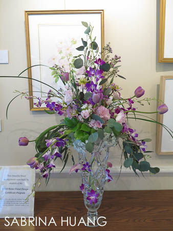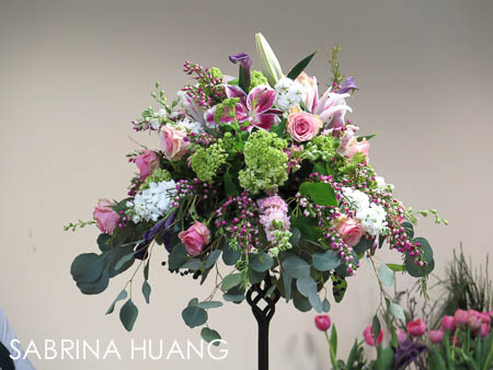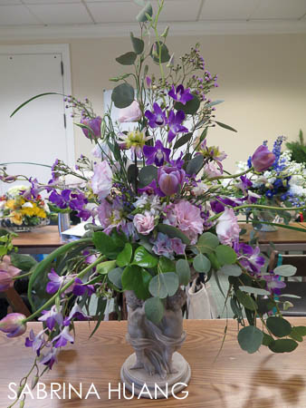 Vertical Arrangements有分二種 – 一種是裝水的玻璃瓶 (no Foam), 但是我覺得老師示範的作品都不好看, 所以我一張照片都沒拍. 另外一種就是用Foam.