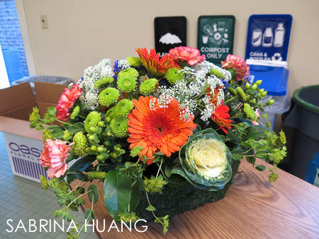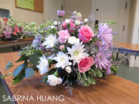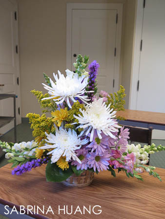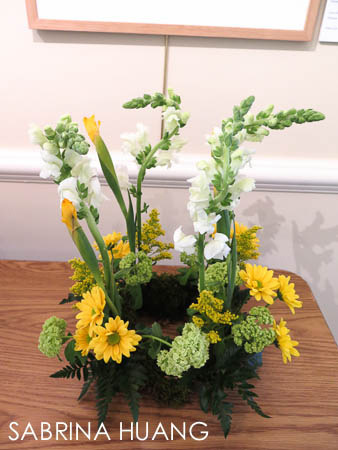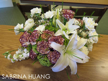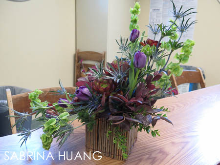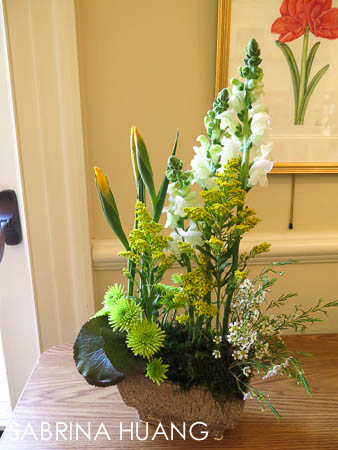 我現在開始覺得有一點點心得, 在課堂上的Hands-On插花, 從一開始趕不上老師示範的速度, 而且搞不清楚要插在哪裡, 到現在可以差不多跟老師同步, 而且成品都讓老師多加讚許, 心裡還是蠻高興的. 不過鮮花在美國真的不便宜, 每次為了交作業去買花, 都覺得貴的嚇死人; 想到花店插好的花是以3-5倍的成本價賣出, 更是滴血啊. 不過也是得想想人家也是花了很多錢去學插花, 知識, 時間, 體力, 都是成本.