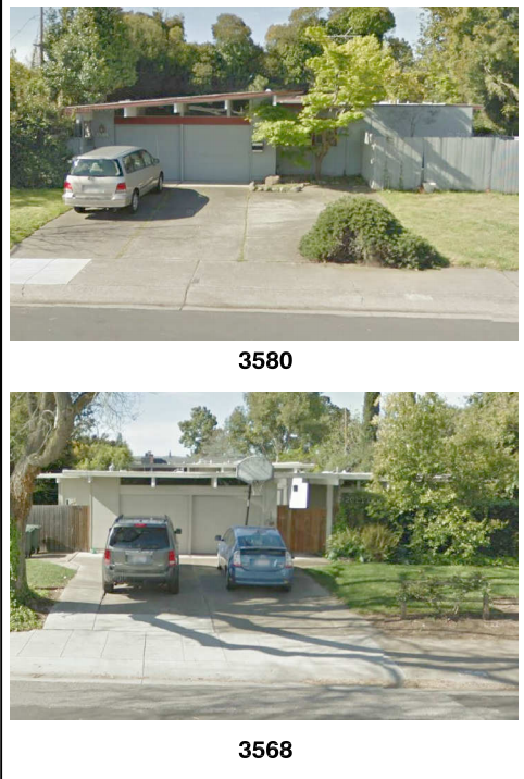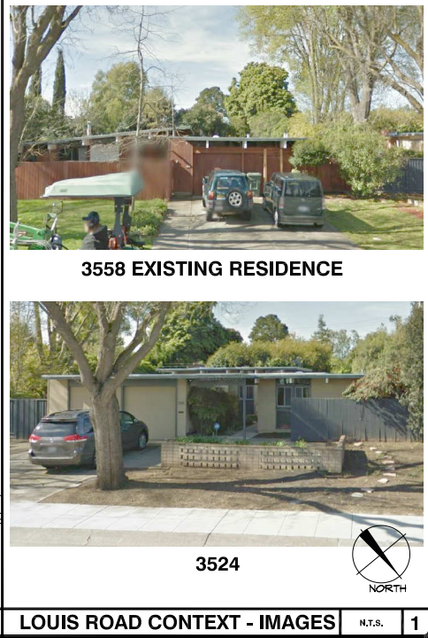 我們最近收到一封來自President of Palo Alto’s Eichler Swim and Tennis Club, 說Club正對面的那間Eichler Home (3558 Louis Rd, Palo Alto) 的新屋主 (Jenny Guo & Tom Chen), 五月初向Palo Alto市府送出一個改建的計劃書, 而這個改建計劃不是重新蓋一個一模一樣的Eichler Home, 也不是蓋一個更摩登現代的, 而是改成一個二層樓共三千呎的傳統式房屋 (上圖), 這下可引起Eichler Community的不滿, 因為Eichler Homes是古蹟ㄟ.