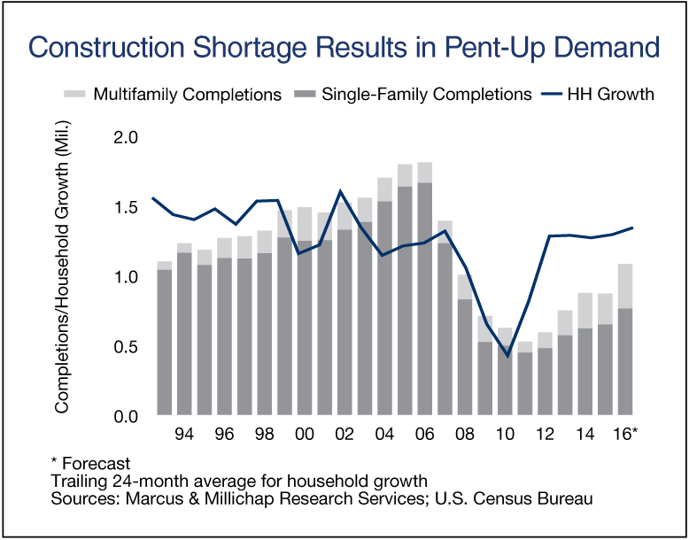 For-sale housing inventory fell to a decade low during August, and limited housing stock along with strong demand for homes are beginning to encourage homebuilders to shift their focus from larger, luxury homes to smaller, entry-level housing. This change could provide some relief to the supply-constrained housing market, though a larger impact will likely not be realized until the spring. Through the remainder of this year, newly formed households will likely continue to favor rentals, sustaining steady demand for the record number of apartments scheduled for delivery in 2016.