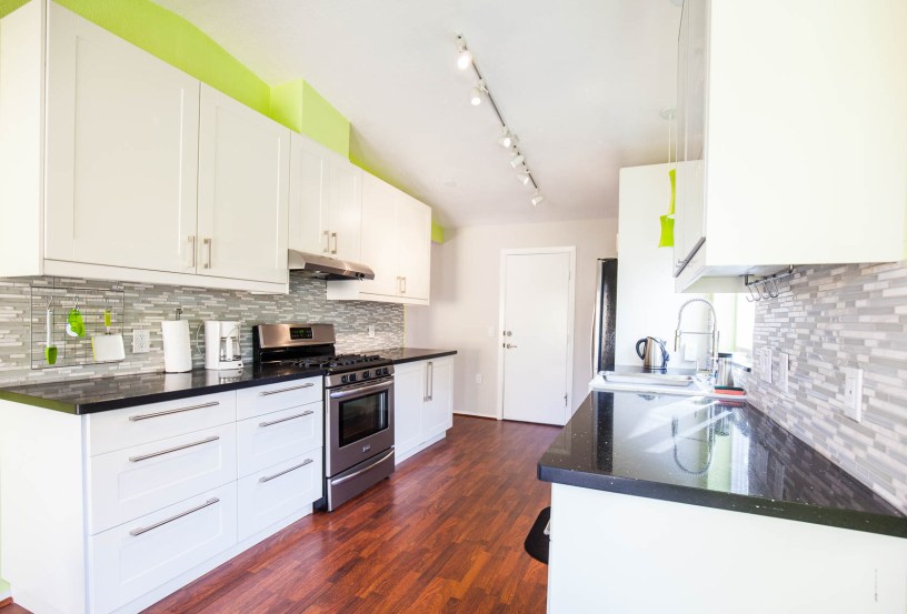 – Stainless steel appliances (fridge, oven, dishwasher, microwave, toaster)