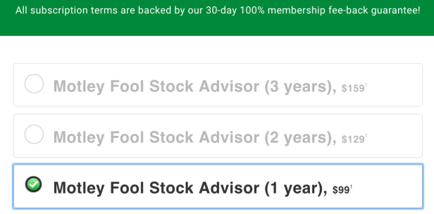 我本身是訂閱Motley Fool Stock Advisor, 你可以選擇一次繳一年或二年或三年, 當然越多年越便宜, 它也有30天全額退費的服務.