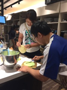 雖然場地不小, 但是每個人分到的桌面空間卻不是很多, 所以有點擠和亂. 除了塑膠碗是最後自己洗淨以外, 其他東西助教們都會隨時收走清洗, 因為每個預約時段是以三小時為限, 所以我們做完後馬上就會有另外一個團體進來.