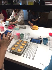 每人會拿到一台iPad, 裡面會有你挑選的那個甜點的作法步驟, 如果有不確定的地方, 就找助教來幫忙.