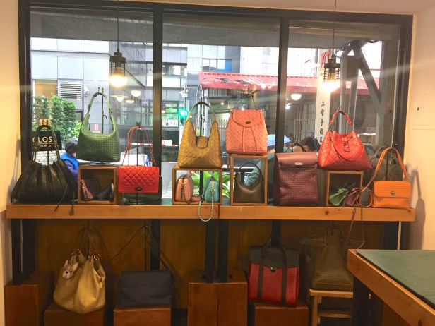 在A&T Workshop 二堂手作文創的臉書上, 看到他們有許多自己設計或改良過的編織包(註一), 菱格包, 是我在其他別的手工皮革工作室沒看過的包款, 其中最吸引我的就是這款馬甲編扇形包. 我前往工作室參觀, 現場有許多成品供你參考, 有很多不同顏色和Texture的皮革讓你挑選, 我逛了一圈, 最後還是選做馬甲編扇形包(肩帶長度可以調整).