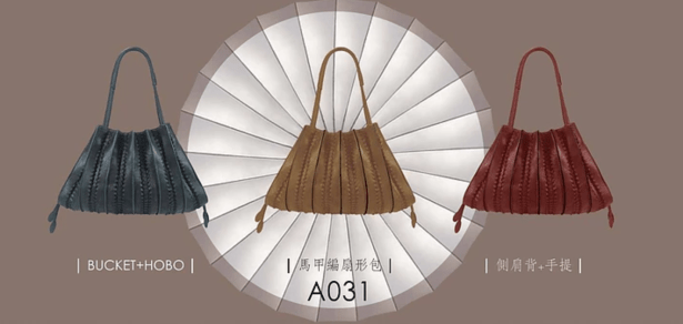 這款馬甲邊扇形包的靈感來源來自一位剛從西班牙玩回來的學生, 有一天背了一個她在西班牙買的包(上圖)來教室, 結果吳老師覺得不是那麼好看, 所以決定設計一款更好看的, 於是馬甲編扇形包就誕生了.