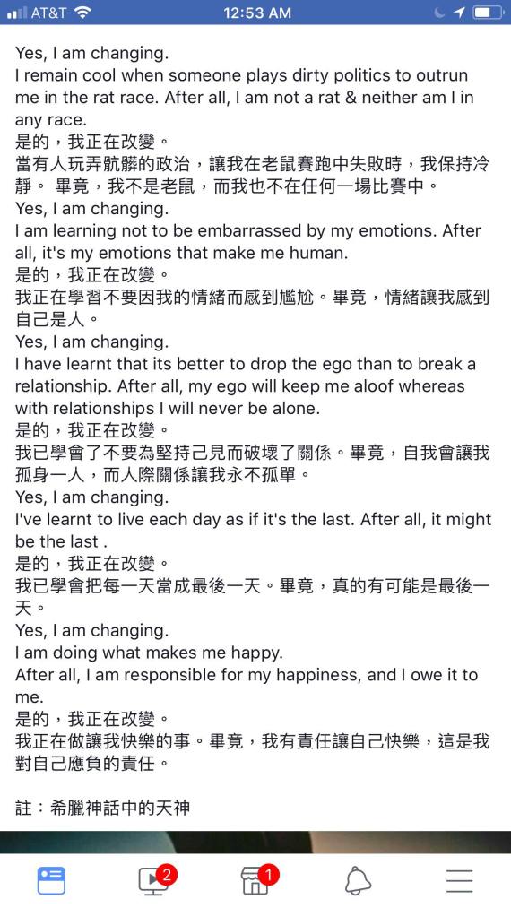 然後你悟到了「捨即是得」,「退步向前」的道理。名利欲望,只有在你放棄用自己的方式追尋時,你才算真正對上天臣服、信任、交託。