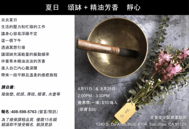 南灣做團體頌缽音療的地方不是很多, 但需求似乎不小, 不想去舊金山的人很多, 所以週日我在中醫診所的大廳所做的團體頌缽音療來了17位 (四位亞裔), 還有14位在候補名單上.