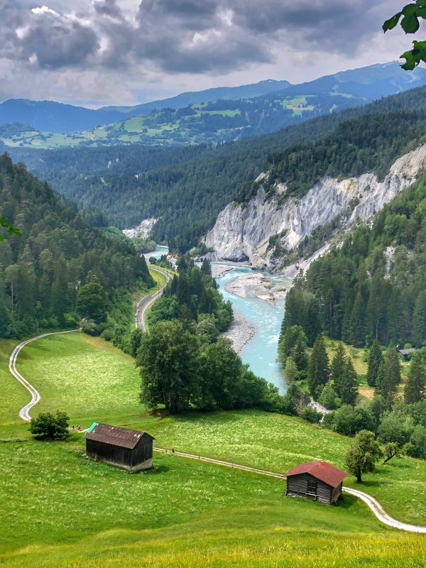 7/22 (D4): 今早搭巴士到Chur火車站附近的Merz Cafe吃早餐, 搭火車到Ilanz, 去走一條叫Rheinschlucht的Trail (Ilanz Train Station到Versam-Safien Train Station), Hiking 4 hours/12 miles, 再搭火車去Chur, 再搭巴士上Tschiertschen.