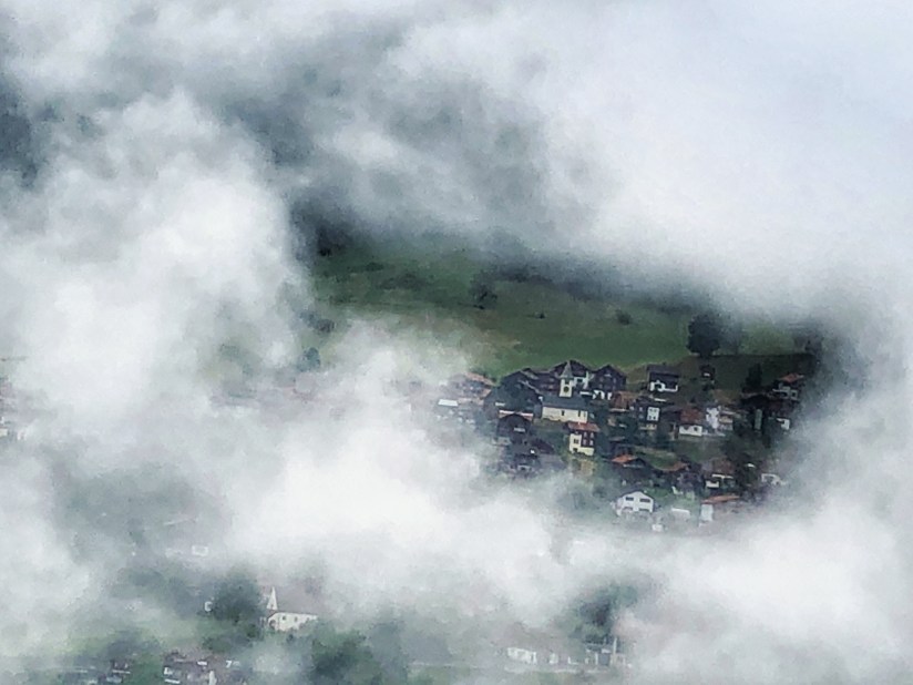 7/28 (D10): 今天一早就起霧和下雨, 很有水墨畫的味道. 下午前往Interlaken去, 在Airbnb待三晚. 今天是在瑞士的第十天, 終於忍不住去加油站的便利商店買杯麵當晚餐, 搭配優格, 麵包和Dried meat. 後來學到西方人吃泡麵的方式是把熱水倒掉後, 加一塊奶油拌勻變成義大利麵. 😛