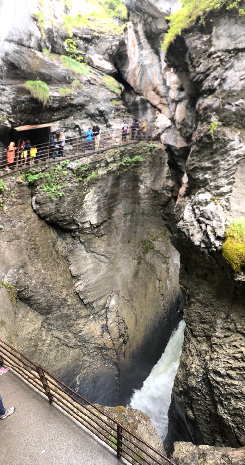 7/31 (D13): 今天要從Interlaken回去Tschiertschen, 從Airbnb吃完早餐後, 先停Trümmelbach Falls. 一個超級大的瀑布, 隱藏在一座大山裡面, 從外面你完全看不見這個瀑布的壯觀啊.