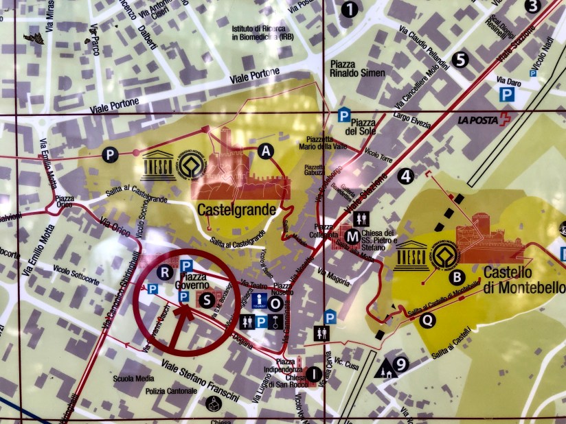 8/5 (D18): 中午過後離開Brissago, 停Castelgrande城堡逛一下 (很有萬里長城的感覺), 看著城堡吃Gelato, 然後回Tschiertschen.