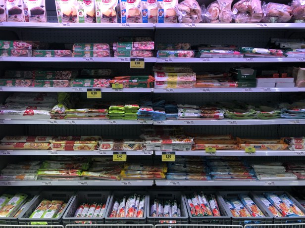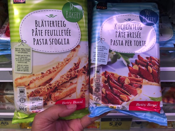 上面這整排是各式各樣的冷凍派皮選擇 – 披薩麵皮, 甜點派皮或水果塔皮,