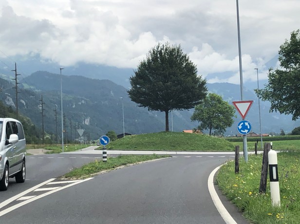 瑞士用很多圓環 (Roundabout)來代替美國常見的紅綠燈或STOP Signs, 我也覺得圓環比Stop Signs更好, 因為車子一直移動.