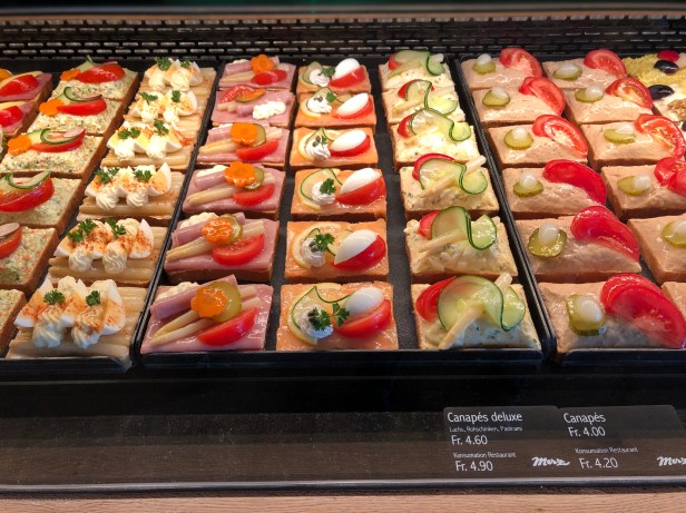 Interlaken East 的這家Coop超市位在觀光客很多的地點, 所以很大, 有壽司, 煮熟的毛豆, 烤好的雞腿, 而且巧克力, 餅乾之類的伴手禮選擇很多, 也有一些綜合包裝的折扣.
