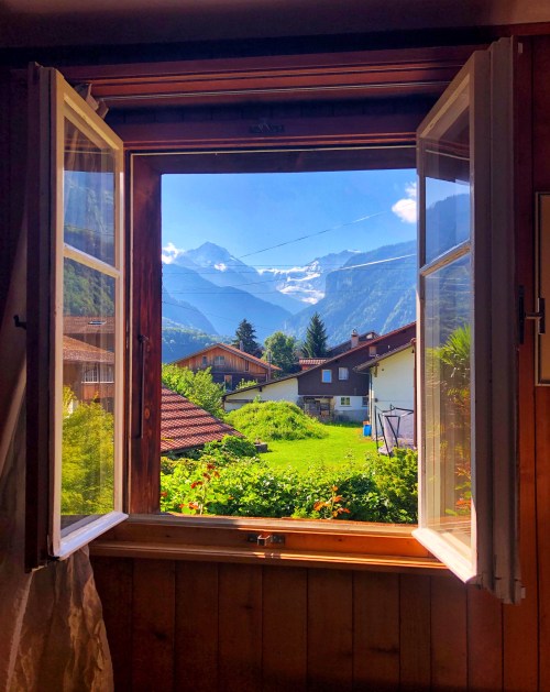 在Interlaken, 我們選擇在Airbnb待三晚, 我們住在Patrick’s Casa Barbara (Room South), Patrick年輕時去美國玩過, 英文說得很好, 這是他奶奶/外婆留下來的房子, 大概二百年, 當地傳統風格的建築. 我建議選擇Room South, 面對後院, 會比較安靜, 而且窗戶打開就看到美麗的山景.