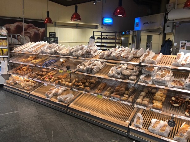 新鮮麵包區, 左邊還有半成品麵包, 讓你回家自己加熱/烤一下, 就有新鮮出爐的麵包可享用.