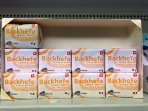 他們有新鮮的酵母菌 (上圖), 冷凍的派皮選擇很多, 麵包有很多選擇, 也有半成品可以買回家烤, 而且全麥或多穀類的麵包都很好吃. 奶油選擇很多, 而且超好吃, 即便從冷藏拿出來, 不用一會就夠軟化, 不像美國的奶油(即便有些號稱是歐洲奶油)都硬梆梆, 超難抹開的, 味道也比美國的濃郁.