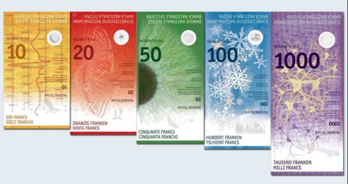The Swiss franc (CHF) 瑞士法郎是瑞士的官方貨幣 (and in Liechtenstein). 瑞士法郎的紙幣很美麗, 五種幣值有不同的顏色和長度. 銅板有七個尺寸和幣值 (五塊, 二塊, 一塊, 50毛, 20毛, 10毛, 5毛). 瑞士周邊的國家, 德國法國意大利和奧地利, 則用歐元.