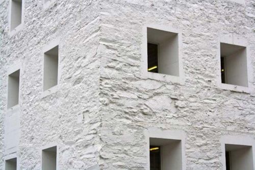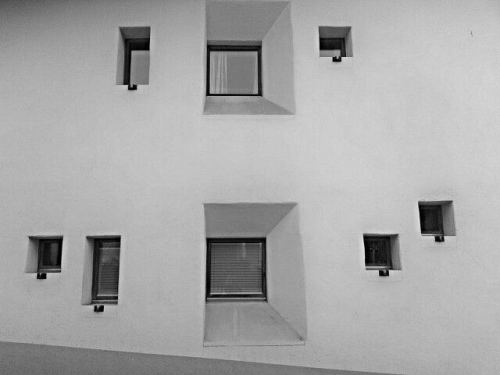 這棟建築將傳統的窗戶做些現代的變化, 每扇窗像畫框.
