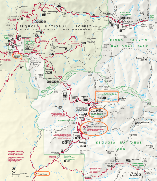 We went in through Hwy 198 Three Rivers from the Bay Area, and out through Hwy 180. We spent our time in the lower part of the park – the first day we went to the General Sherman tree area, the second day we went to Moro Rock, Tunnel Log, and Crescent Meadow, the last day we went to the Tokopah Fall area. That’s all we have time for because the park is too big.
