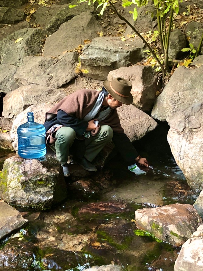 新鮮的山泉水非常的冰冷, 但非常的美味. 我看到很多人帶著5-10 加侖的大水壺來裝水回家.