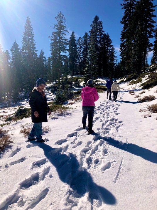 我們去到Bunny Flat的時候發現無法再往北開, 而Bunny Flats trail 也是被白雪覆蓋, 不過人不是很多也挺好的.