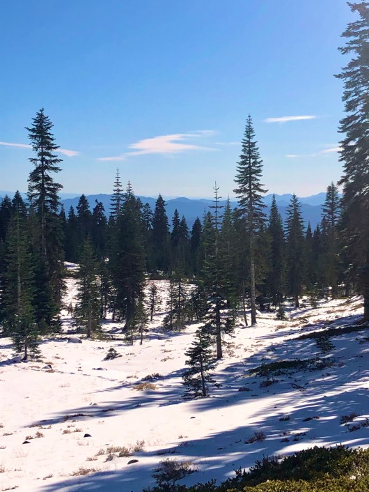 When we were there, only the Bunny Flats trail is open, we couldn’t drive to Panther Meadows Trailhead (upper). As far as the Bunny Flat trail, it’s covered with snow. There aren’t many people there so it’s kind of nice.