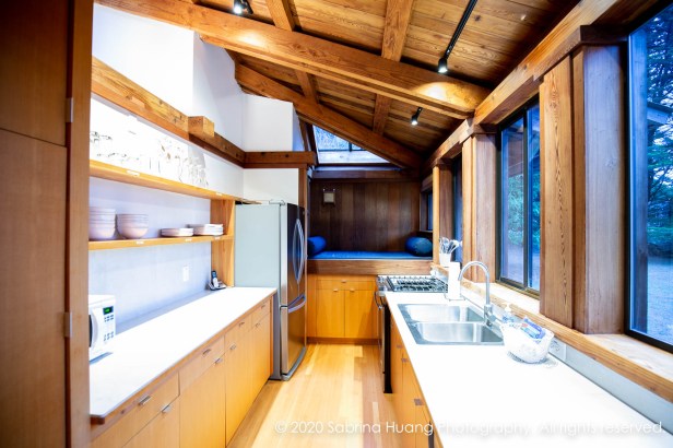 Hinoki House was designed and built by master craftsman Thamby Kumaran, his mentor Kihei Ichikawa, Morio Goto, and Michael Singer in 1976 (which is Kumaran’s first project). Traditional Japanese craftsmanship using post-and-beam with many large glasses windows filled with bright and airy rooms that reminds me of the Eichler homes.