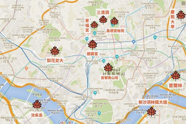 在首爾市區就看緣分,以下是有機會看到楓樹的市區景點: