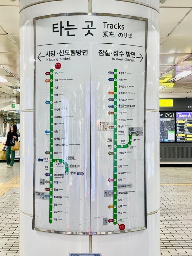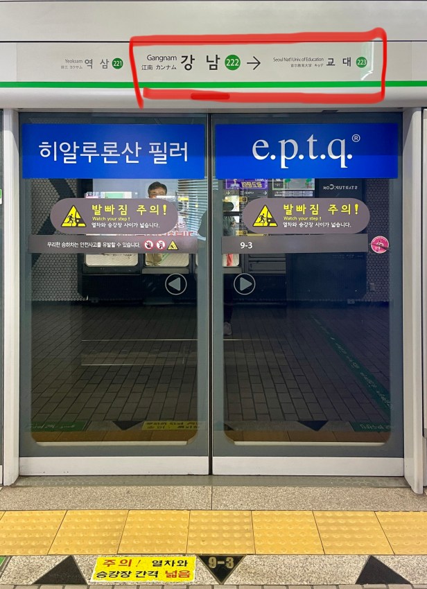 先來分享地鐵的各種標誌,你不用真的懂韓文,只要搞清楚Naver 怎麼用,然後知道你要去的站名和數字,坐對方向,注意看車廂裡的電子螢幕及播報(有中英文),然後下車後再跟著指標出去或是轉乘別條線。