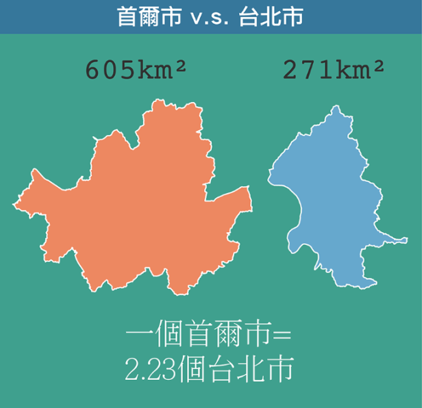 首爾比台北大二倍多,總人口達2400萬 (人口密度幾乎是紐約的2倍),不僅位居南韓第一,還名列世界第5大都會區。