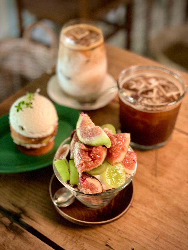 然後搭公車去延南洞晃一下,Amy說現在無花果是當令水果,所以她帶我來這家喝咖啡吃無花果甜點 ,品嚐一下當天手工製作的無花果和葡萄的優格甜點,不甜不膩,二人分享一份剛好。
