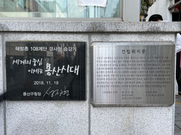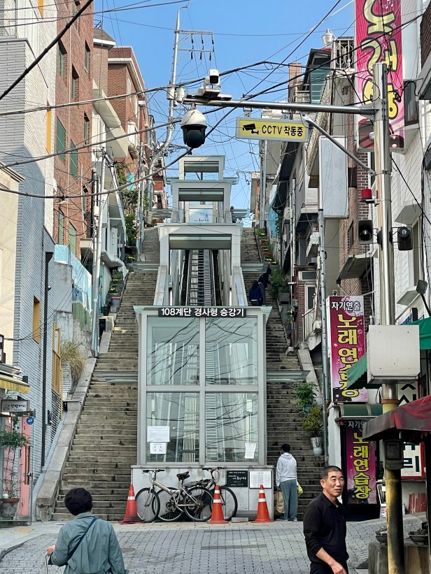 Woody説,很多地理位置較高的住宅區都是比較窮的 (稱為月亮區),因為交通不方便 (雖然可以看見的景致好),所以有些地方的住戶一直要求政府裝置Inclined elevator,方便住戶 (尤其老人家) 上下社區,他帶我去坐的這個會停四站 (108個階梯),不然真的會走死人啊。