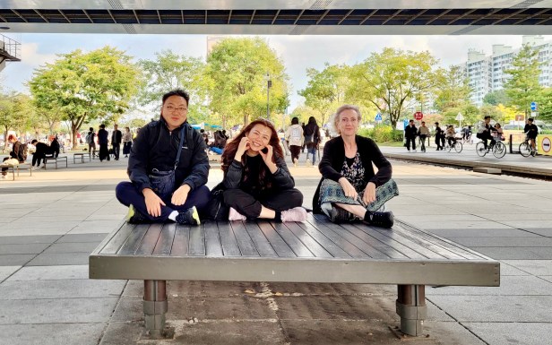 第二位地陪Woody 在Airbnb上找的,週末他會帶外國遊客去漢江公園騎自行車,我是私下簡訊問他願不願意做地陪。他畢業於韓國大學,曾在念碩士的時候到美國做一年的交換學生,英文還不錯,人又風趣,在LG工作二十幾年,今年五十歲,有一個15歲女兒和12歲兒子,他跟我說他和他太太是媒妁之言,讓我很驚訝。