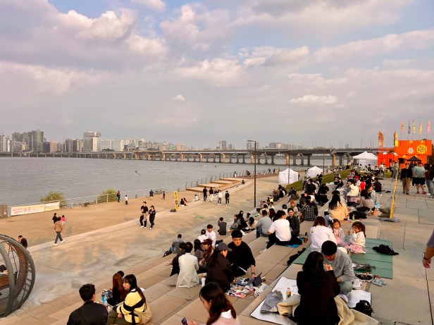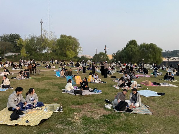 傍晚去漢江月光夜市,看到好多人在漢江公園野餐,有人專門擺攤租借野餐用具,真的挺不錯的。