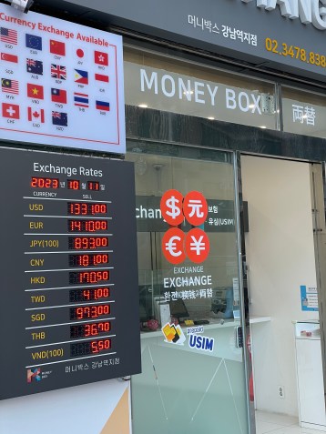 很多遊客都是到明洞的換錢所換韓元,但我圖方便,剛好江南站附近也有一個換錢所,加上我有列印Creatrip優惠卷,所以當天美金我換1:1334,明洞二天前是1345,差11塊韓元,如果換美金一千塊,差八塊美金,我覺得八塊換我一個省事還是值得的,因為時間和地鐵費也是錢啊,我就不需要為了省八塊還特地跑一趟明洞。