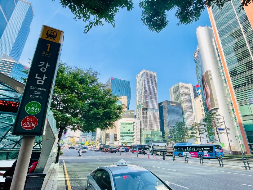 我覺得江南環境很好,遊客少,地鐵江南站周遭附近有好幾間Olive Young、Egg Drop (有名的雞蛋三明治店)、Daiso、鼎泰豐、Money Box (換錢所)、超市、Line Friends、Shake Shack、100種口味的Baskin Robbins、各式餐廳和咖啡廳等等 (走路十分鐘內會到),地鐵江南站的地下街有很多商店和小吃店,而且有機場巴士6020號會到。