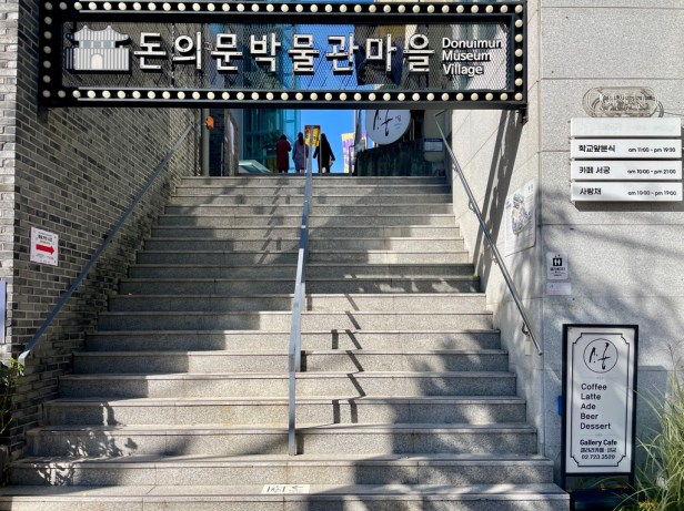 貞洞路走到底,會看到敦義門博物館村- 近代首爾歷史的復古景點 (免費的博物館),將一個舊社區保留下來,有理髮院、照相館、俱樂部、旅社、電影院、一般住家、咖啡廳等等,維持一百年前社區日常生活的模樣。