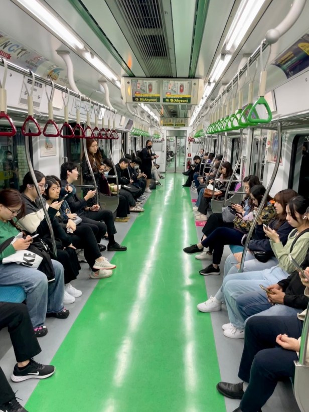 地鐵的標示也很清楚,即便你不懂韓文和英文,光是看站名數字和路線顏色,也是能自由來去,因為邏輯和台北的捷運差不多,但因為首爾的地鐵路線很多條,所以需要稍微注意一下,上下車的方向。